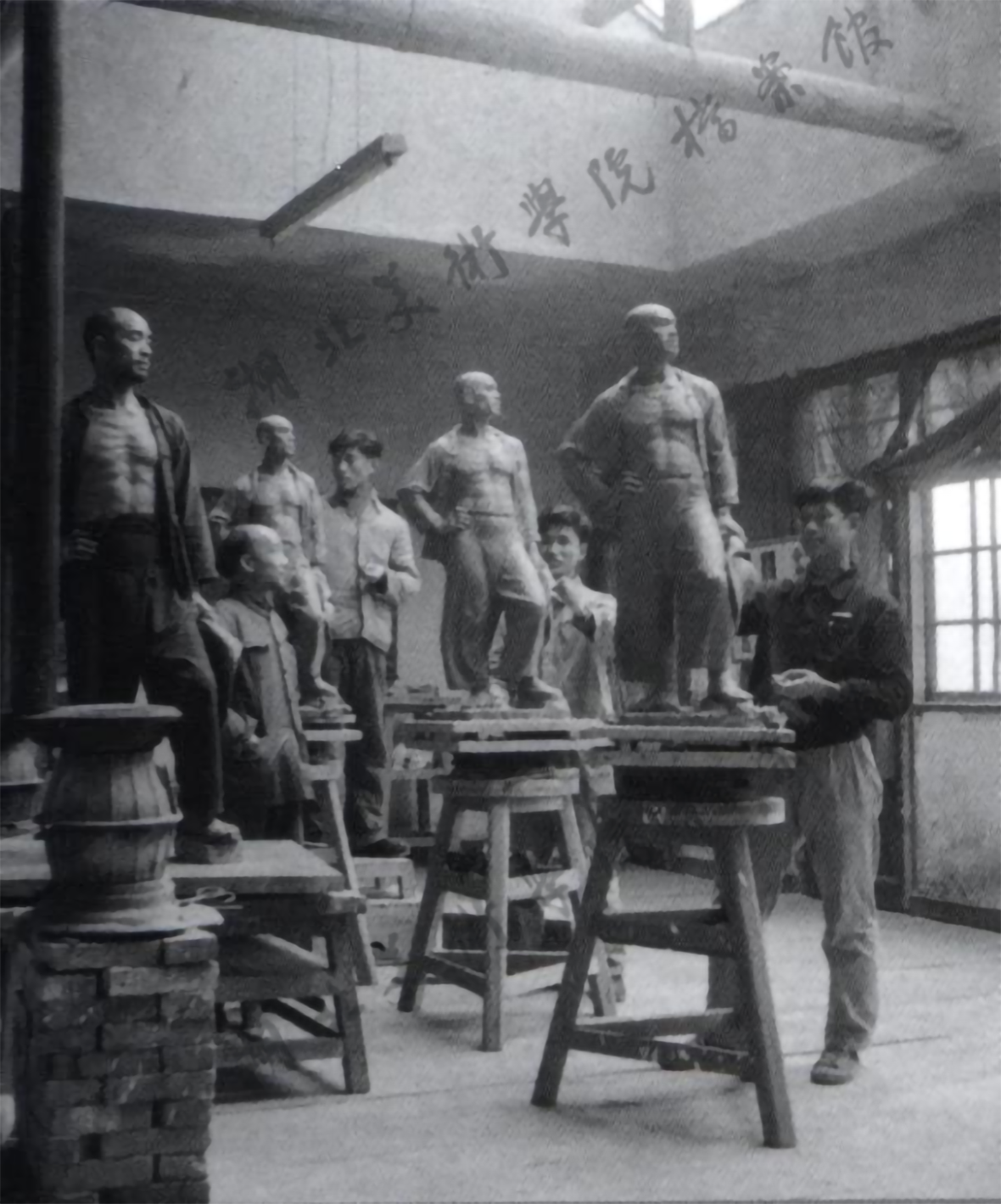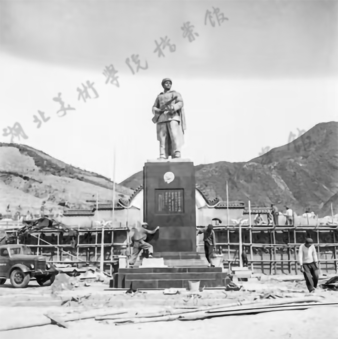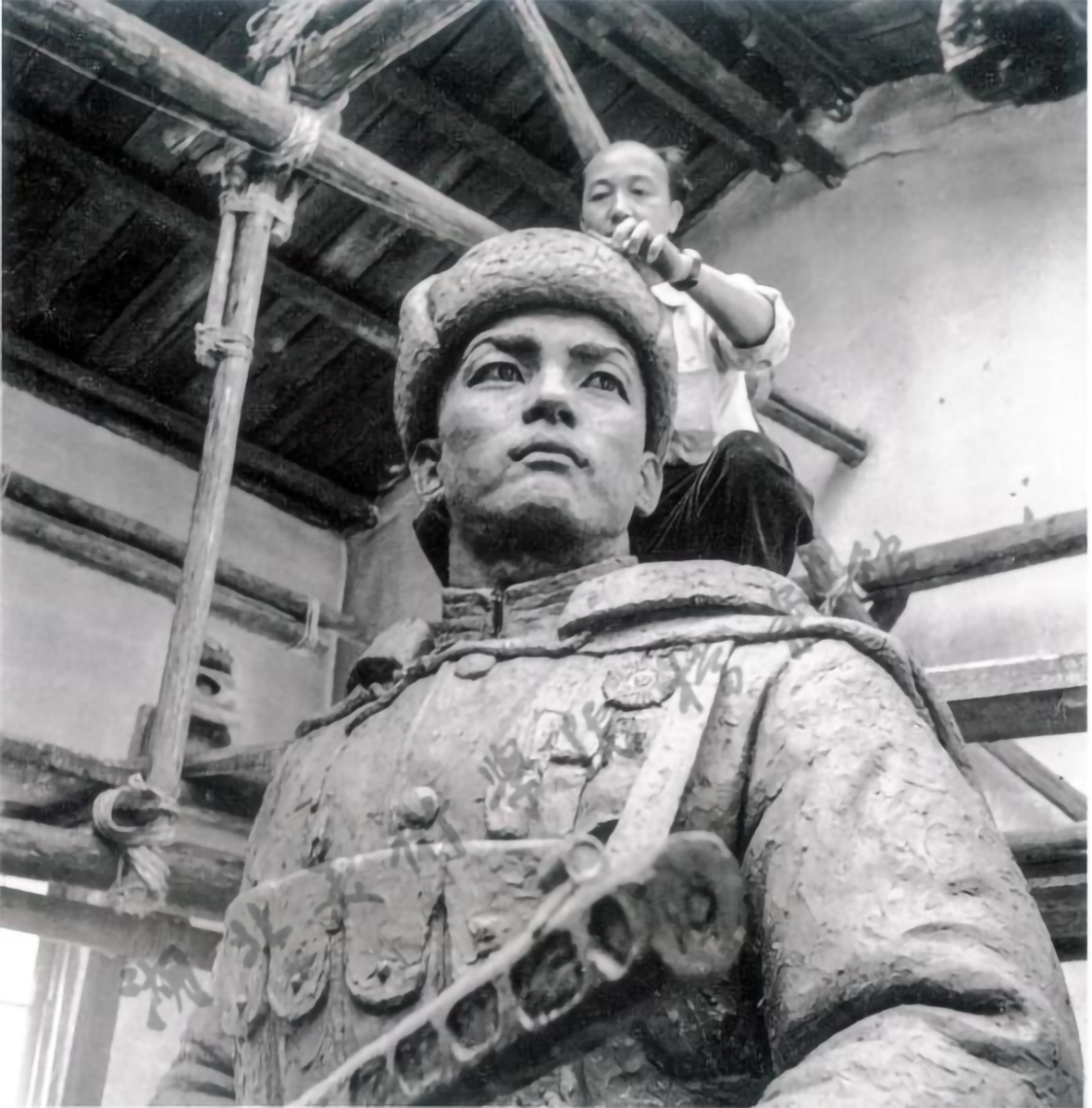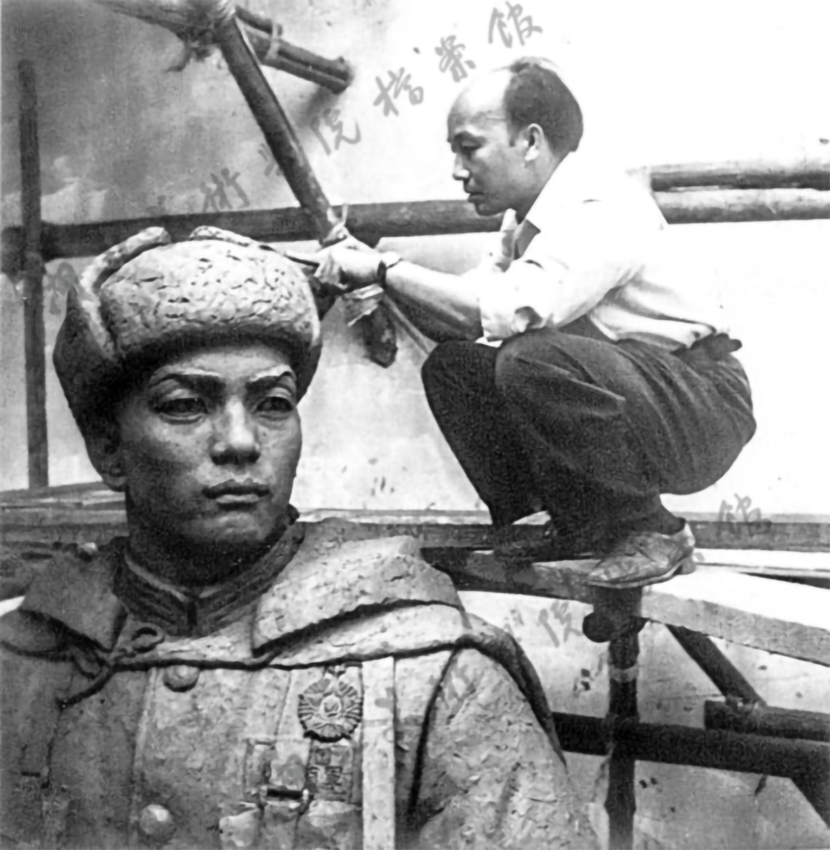 1957年,志愿军无名英雄像泥塑放大完成时现场所拍摄