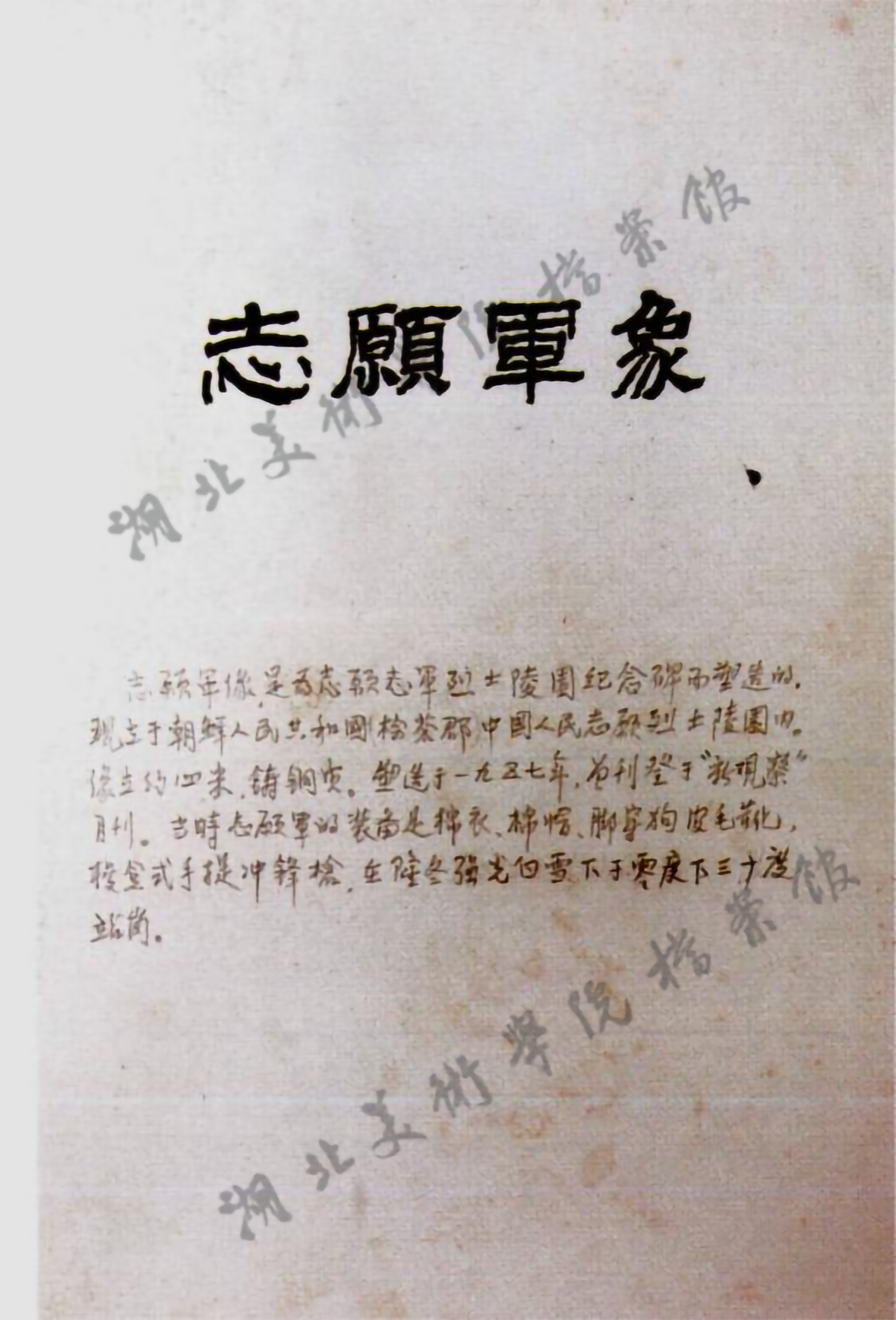 张祖武为创作志愿军像所写简介的手迹