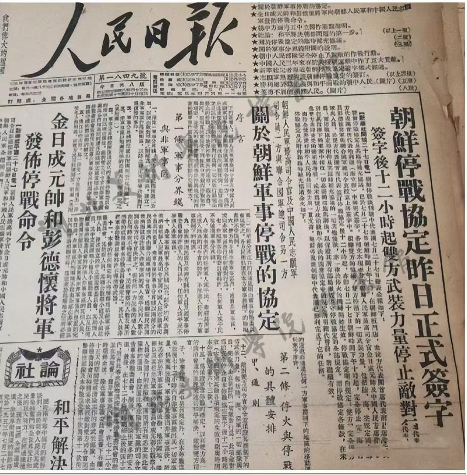 1953年7月28日,《人民日报》报道朝鲜停战协定签字的消息并全文刊发《关于朝鲜军事停战的协定》