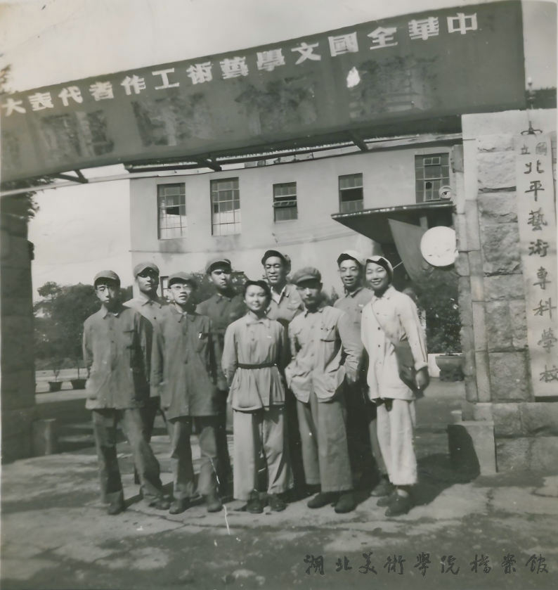 1949年,中华全国文学艺术工作者代表大会召开时,部分参会同志们在国立北平艺术专科学校门口合影