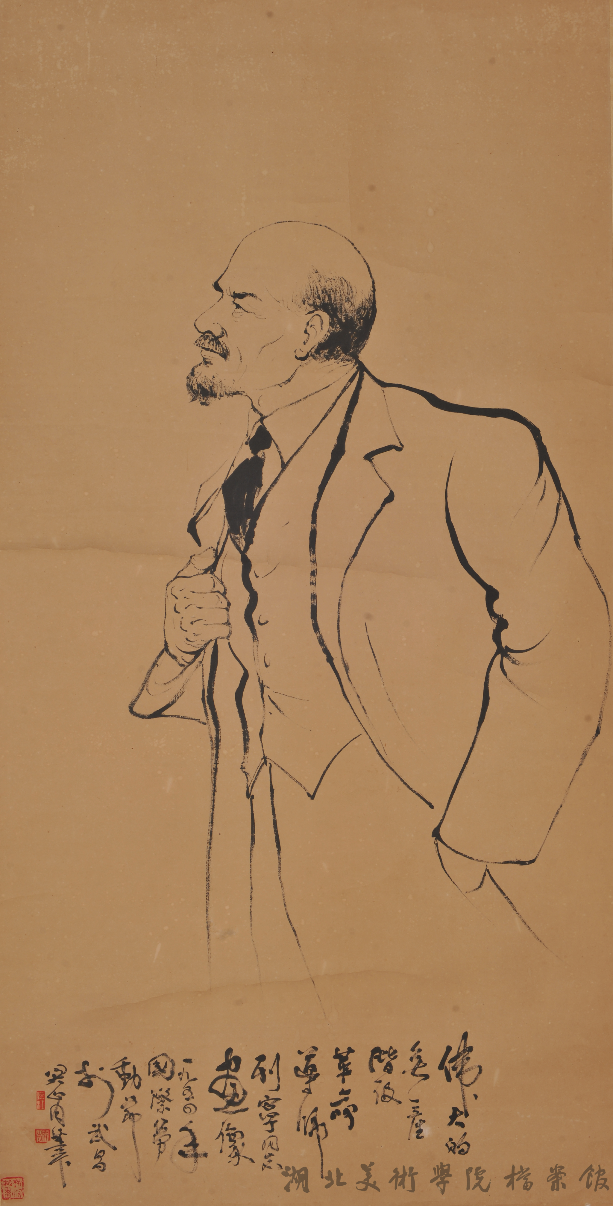 1954年,关山月任中南美专副校长时期所作中国画《列宁像》