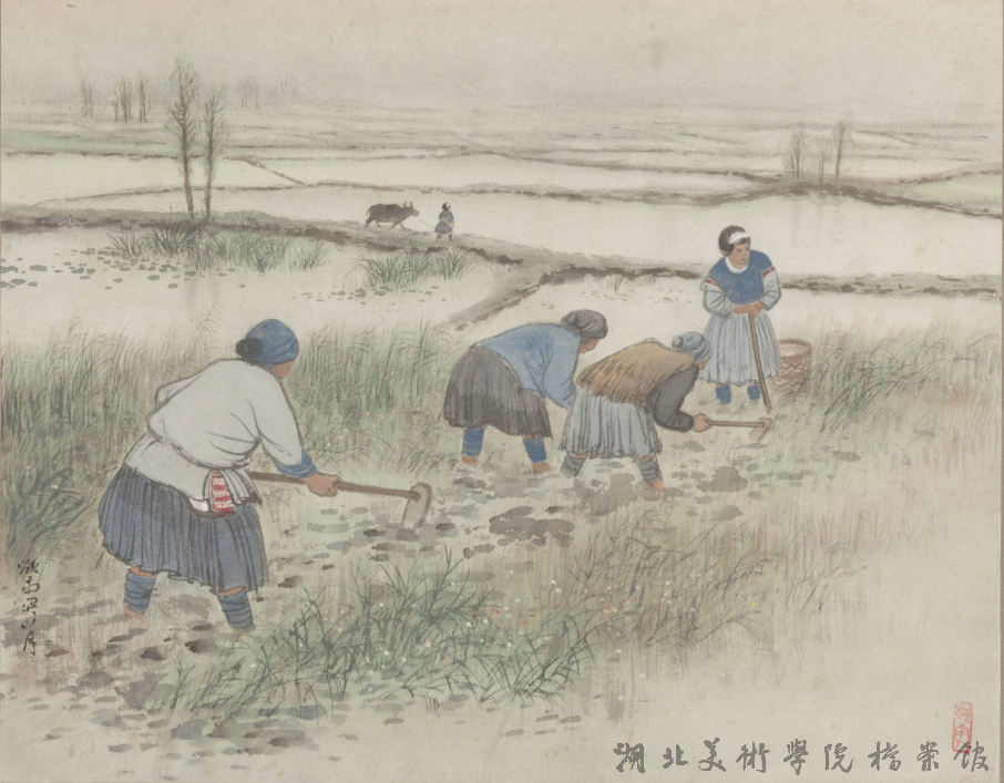 关山月《春耕》 国画 纸本水墨设色 44.7cm×35.2cm 1942年