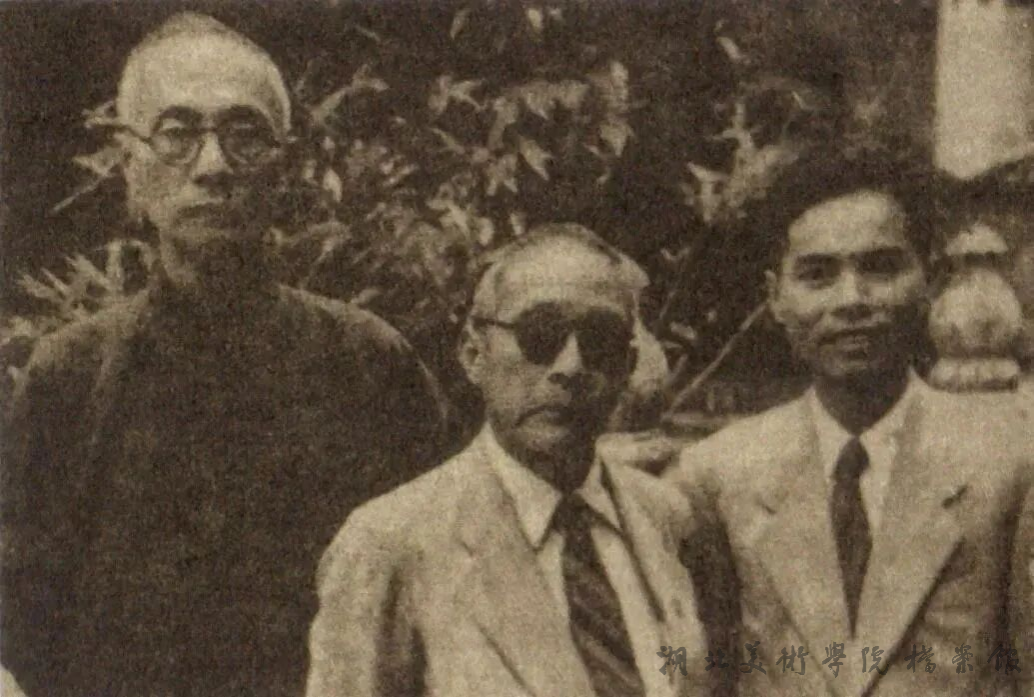 1947年,关山月(右)、高剑父(中)、陈树人(左)在广州