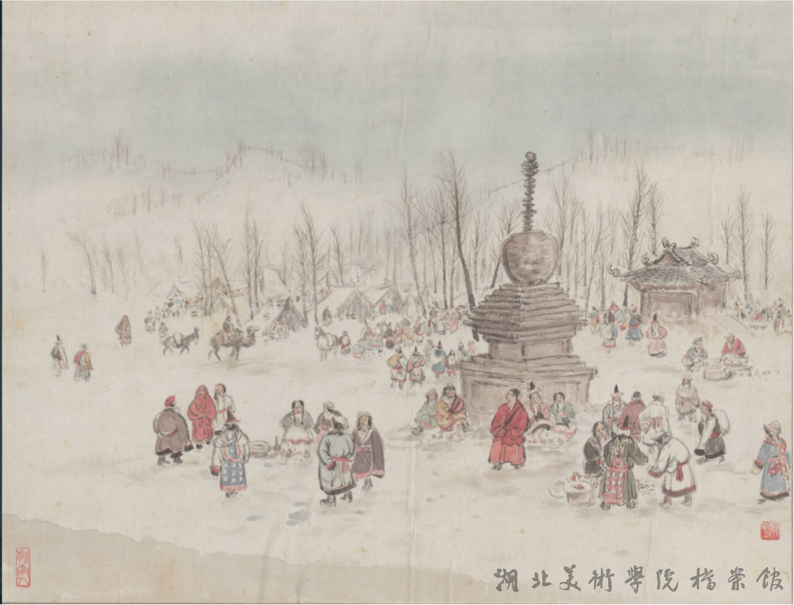关山月 《塔尔寺庙会》 国画 纸本设色 44.9cm×34.9cm 约1943-1944年