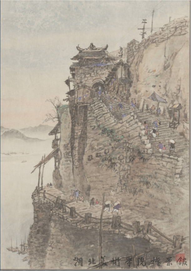 关山月 《重庆东水门》 国画 纸本设色 33.4cm×47.5cm 约1942年