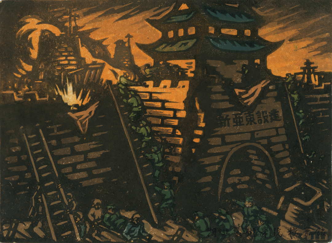 胡一川 《攻城》 套色木刻 1946年作于张家口