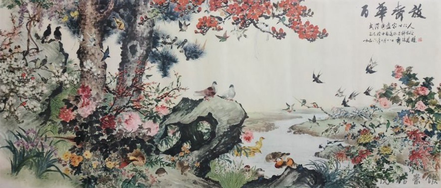 1956年,关山月、黎雄才、杨之光、张振铎、王霞宙、张肇铭、汤文选等26人合作中国画《百花齐放》